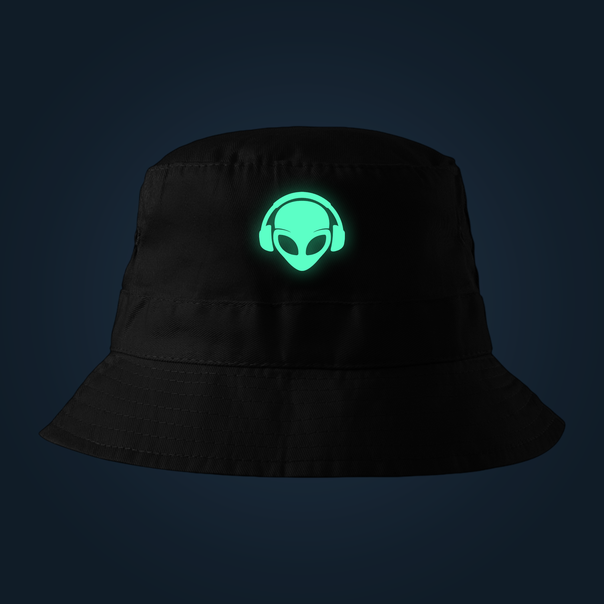 The print appears white in normal daylight and glows bright green in the dark or under UV light.