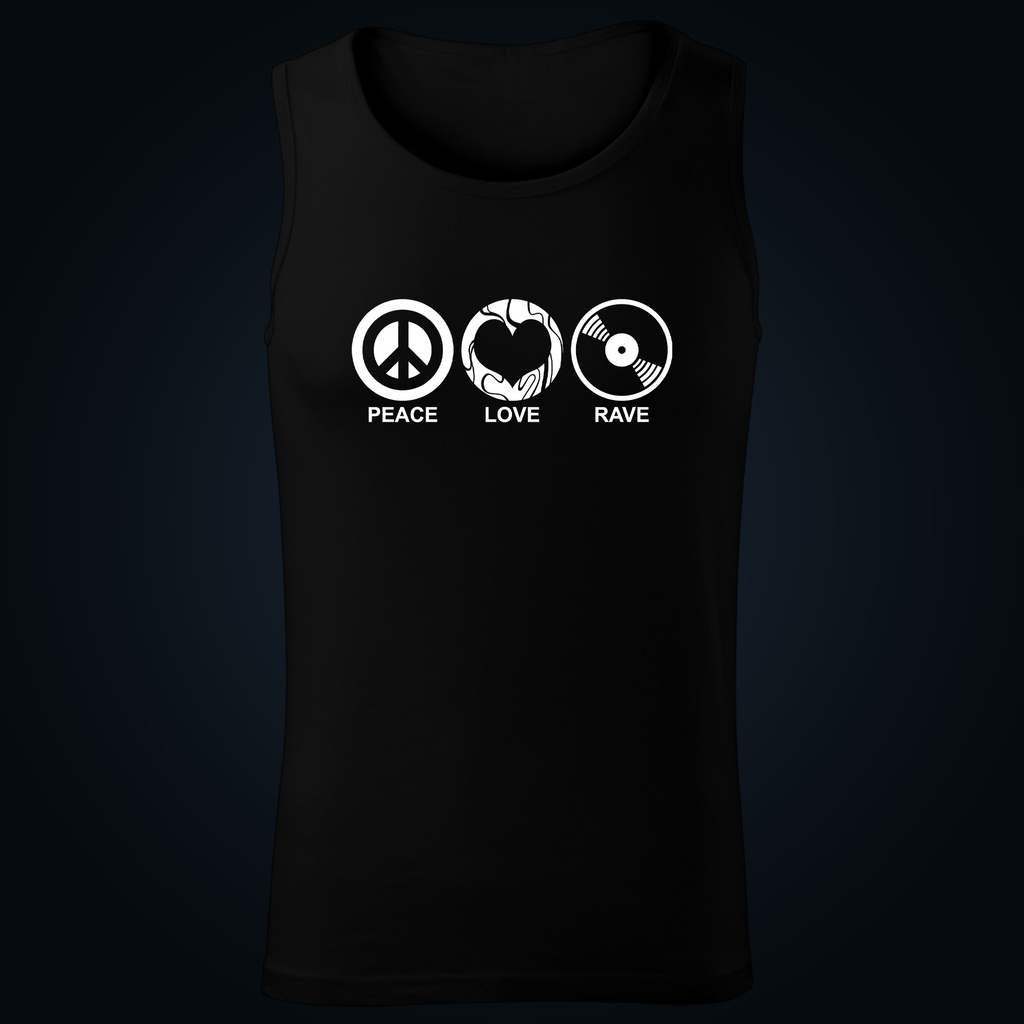 Peace, Love, Rave tank top men